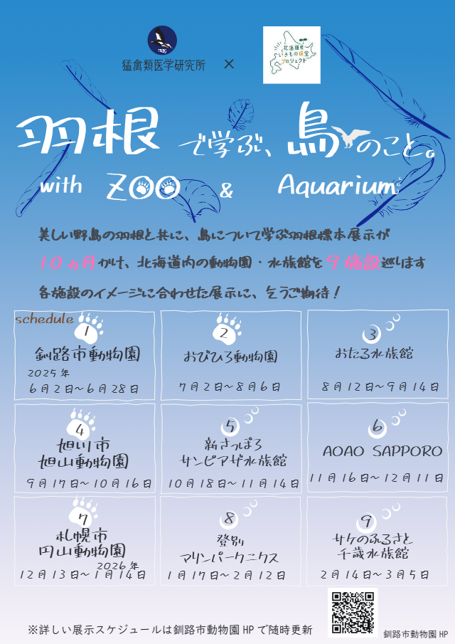 当館も参加している「北海道産いきもの保全プロジェクト」の活動の一環として、猛禽類医学研究所とコラボレーションして実施している巡回展「羽根で学ぶ、鳥のこと。With Zoo & Aquarium」を、このたび当館でも開催いたします。