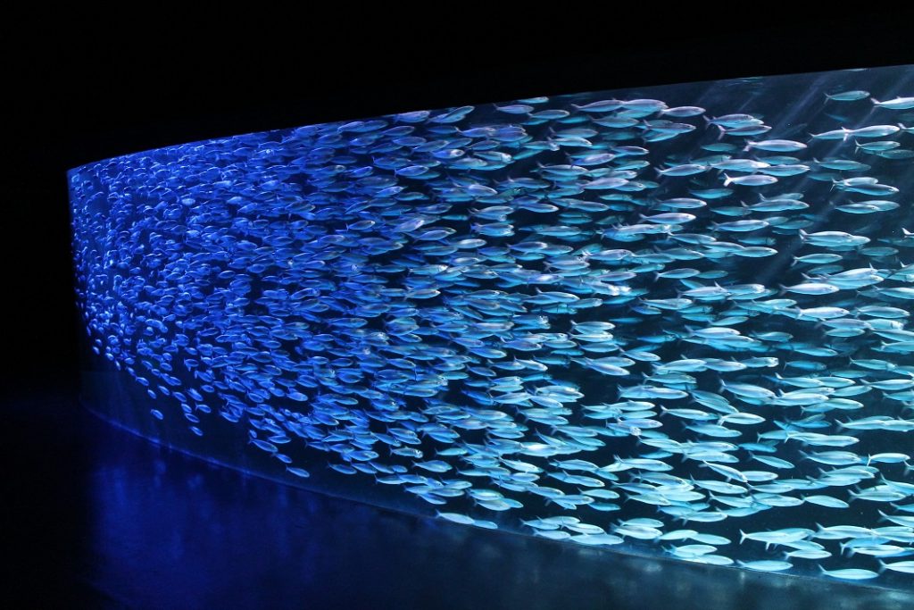 1万匹のイワシ達が魅せる大きなうねりが圧巻の「銀河水槽」で、雪が降る冬をイメージした楽曲とそれに連動したライティングを施した「冬バージョン」を行います。