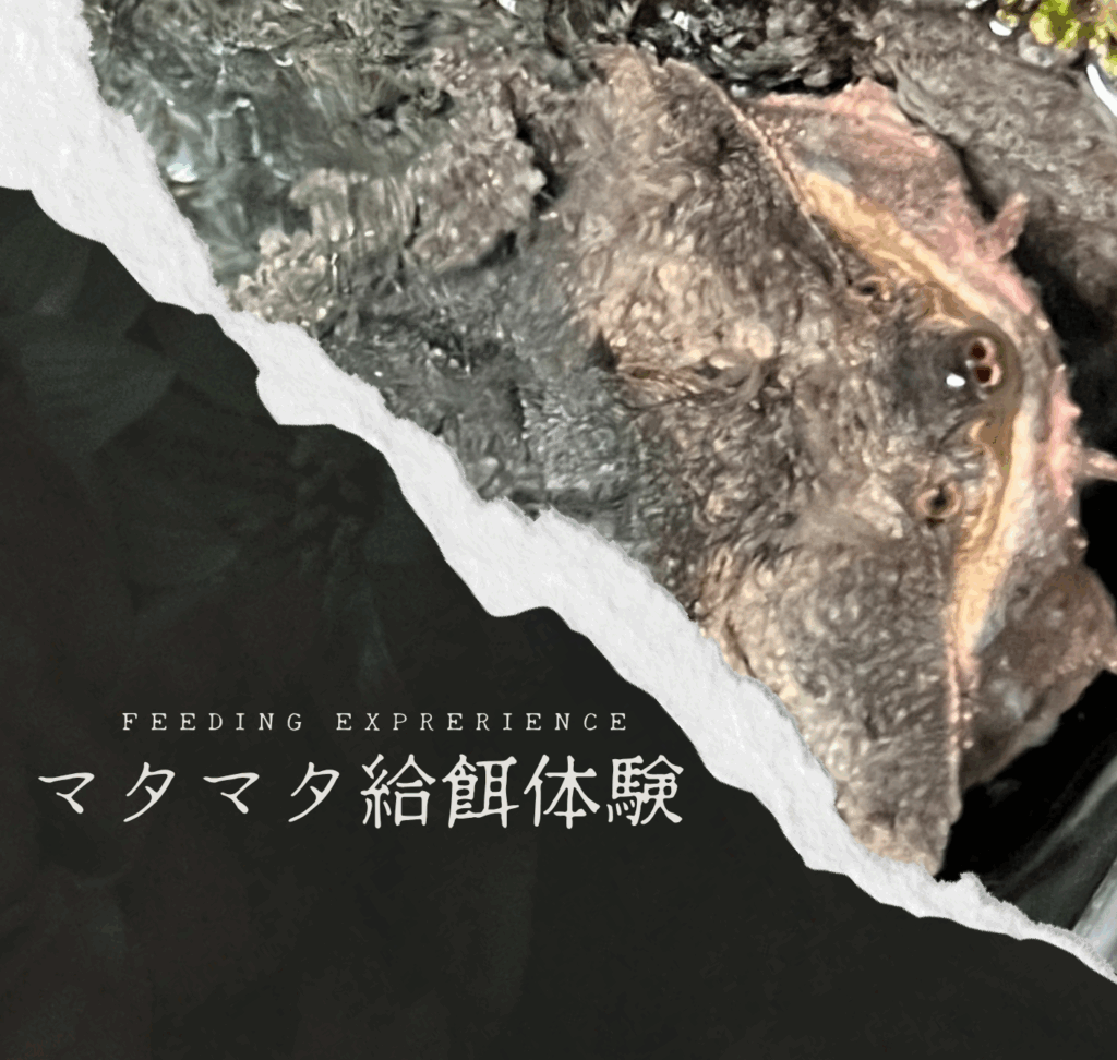 陸族館入口で展示しているマタマタに給餌体験できるイベントを開始します!
