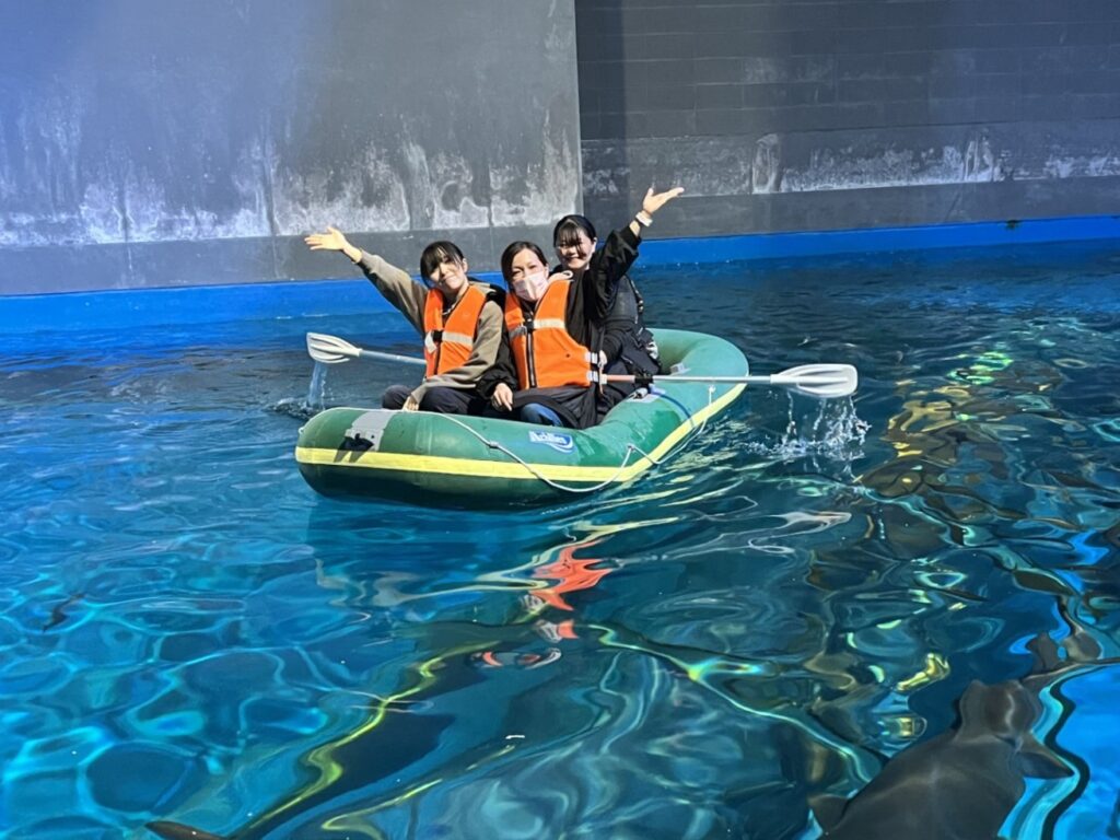 スタッフが操縦するボートに乗り込み、暖流大水槽を水上探検するツアーです。すぐ下には大型のサメの仲間「シロワニ」も泳いでいるため、ハラハラドキドキしながら大水槽の生き物について知っていただけます!